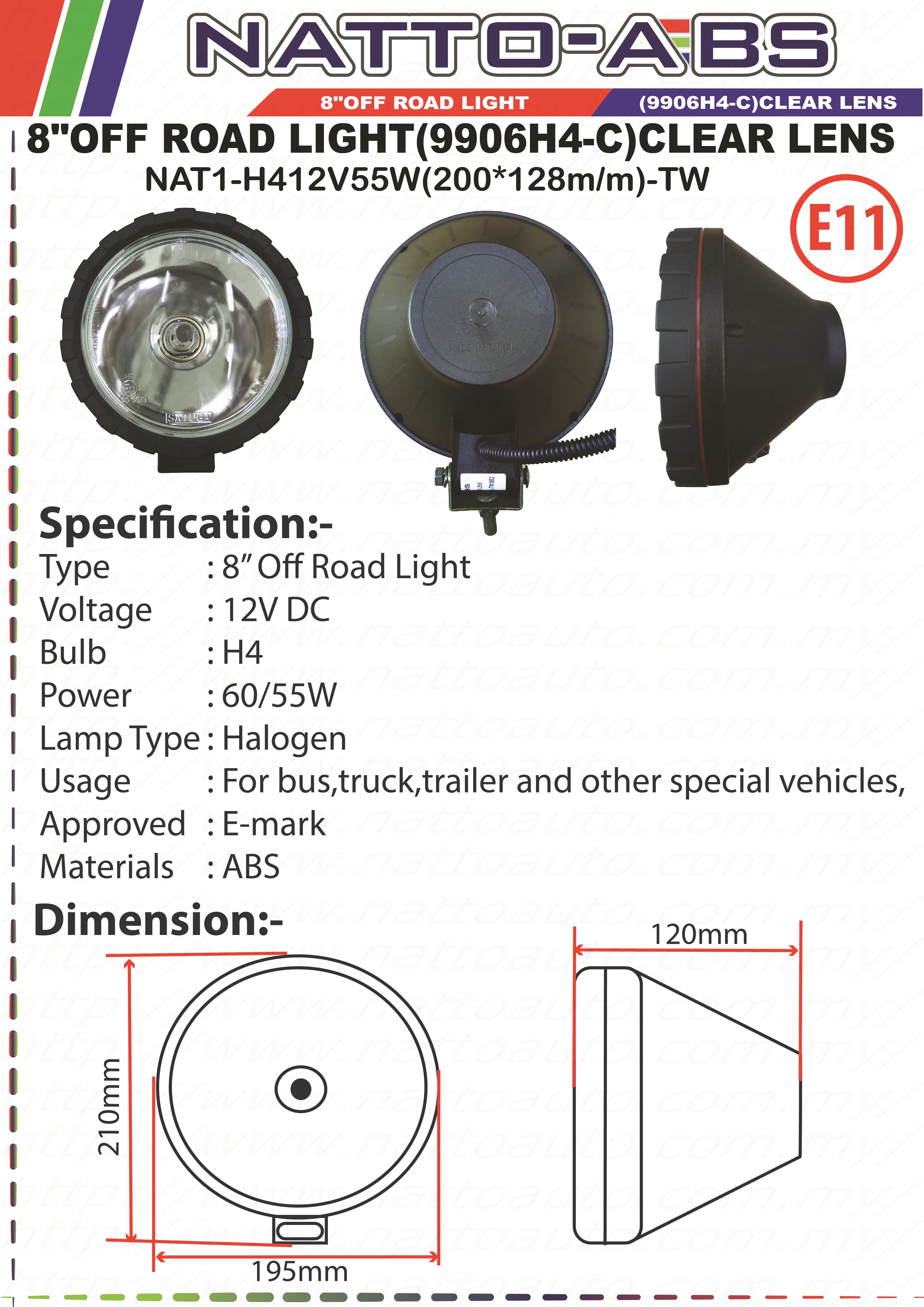 8OFF ROAD LIGHT(9906H4-C)CLEAR LENS