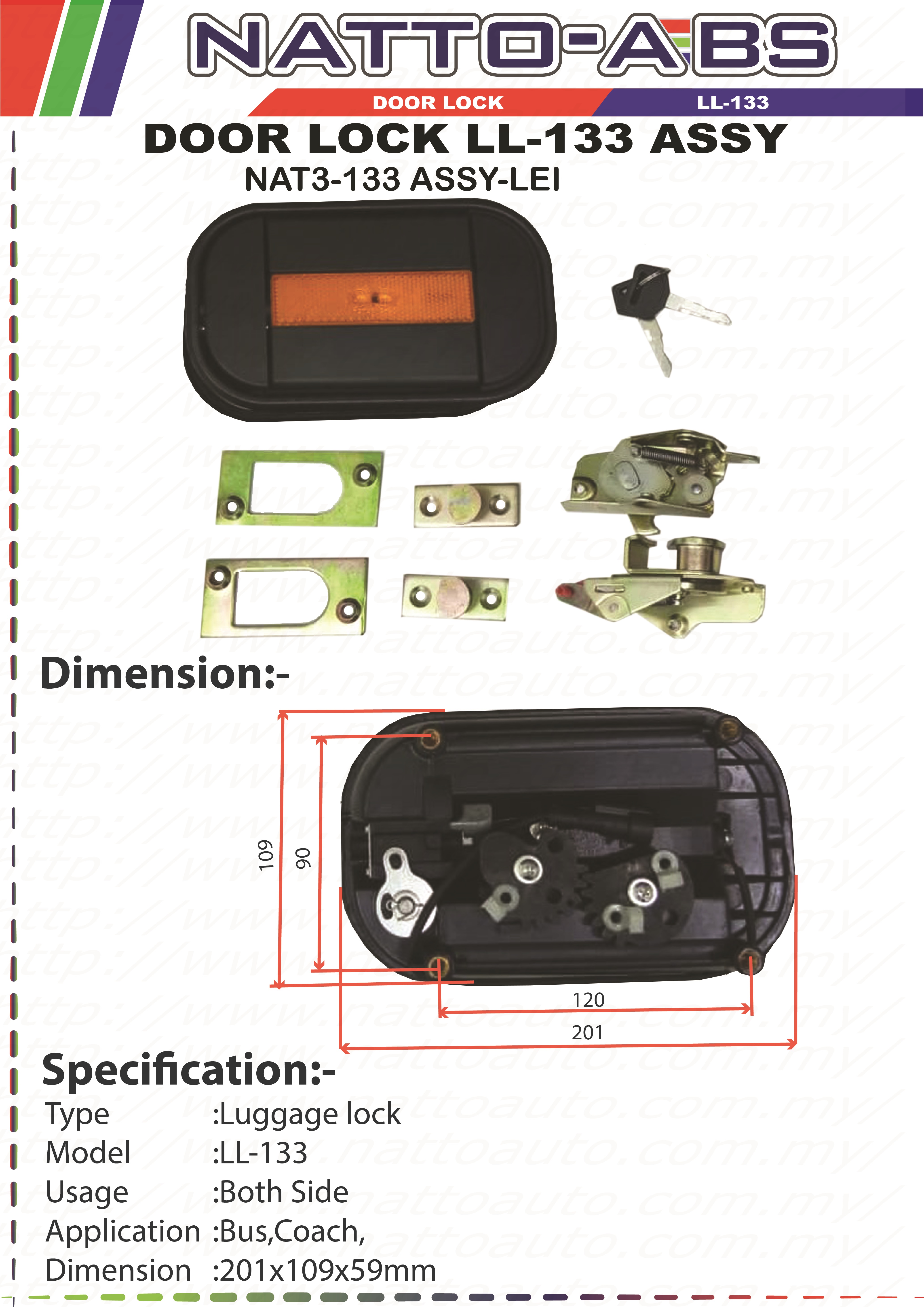 BUS LUGGAGE DOOR LOCK WITH REFLECTOR LL-133