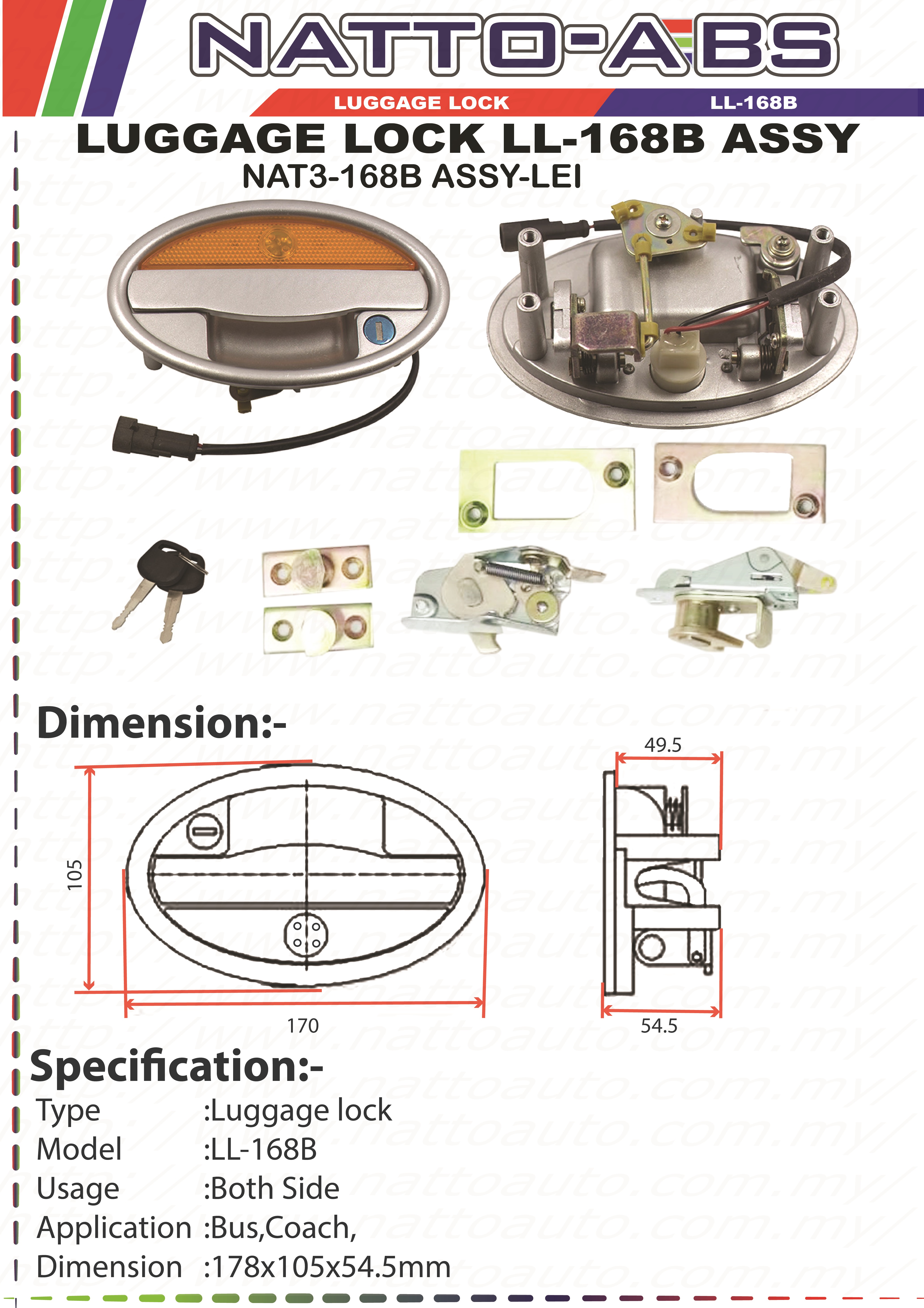 BUS LUGGAGE DOOR LOCK WITH REFLECTOR LL-168B